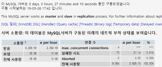 현재 MySQL상태정보이다.
