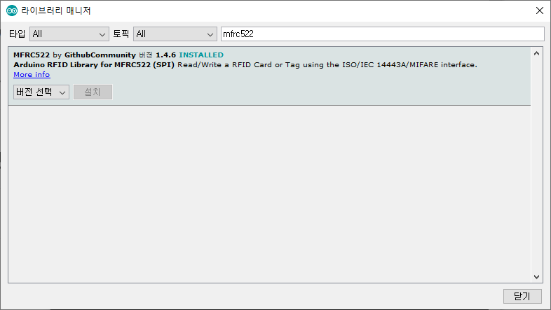ESP32에서 RFID를 활용하기 위해 아래의 라이브러리를 추가로 설치해야 합니다.