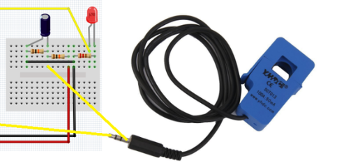 10K옴과 10uF는 GND에 연결하고 다른단은 SCT013 3극 잭에서 가장 안쪽에 위치한 잭에 연결해준다.