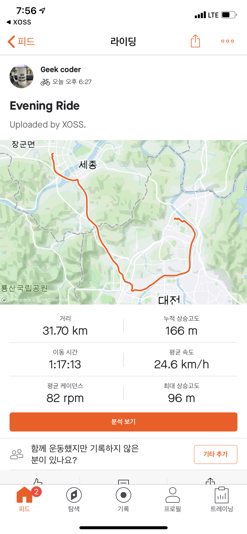세종에서 출발해서 반석을 지나 갑천을 따라 올라온다