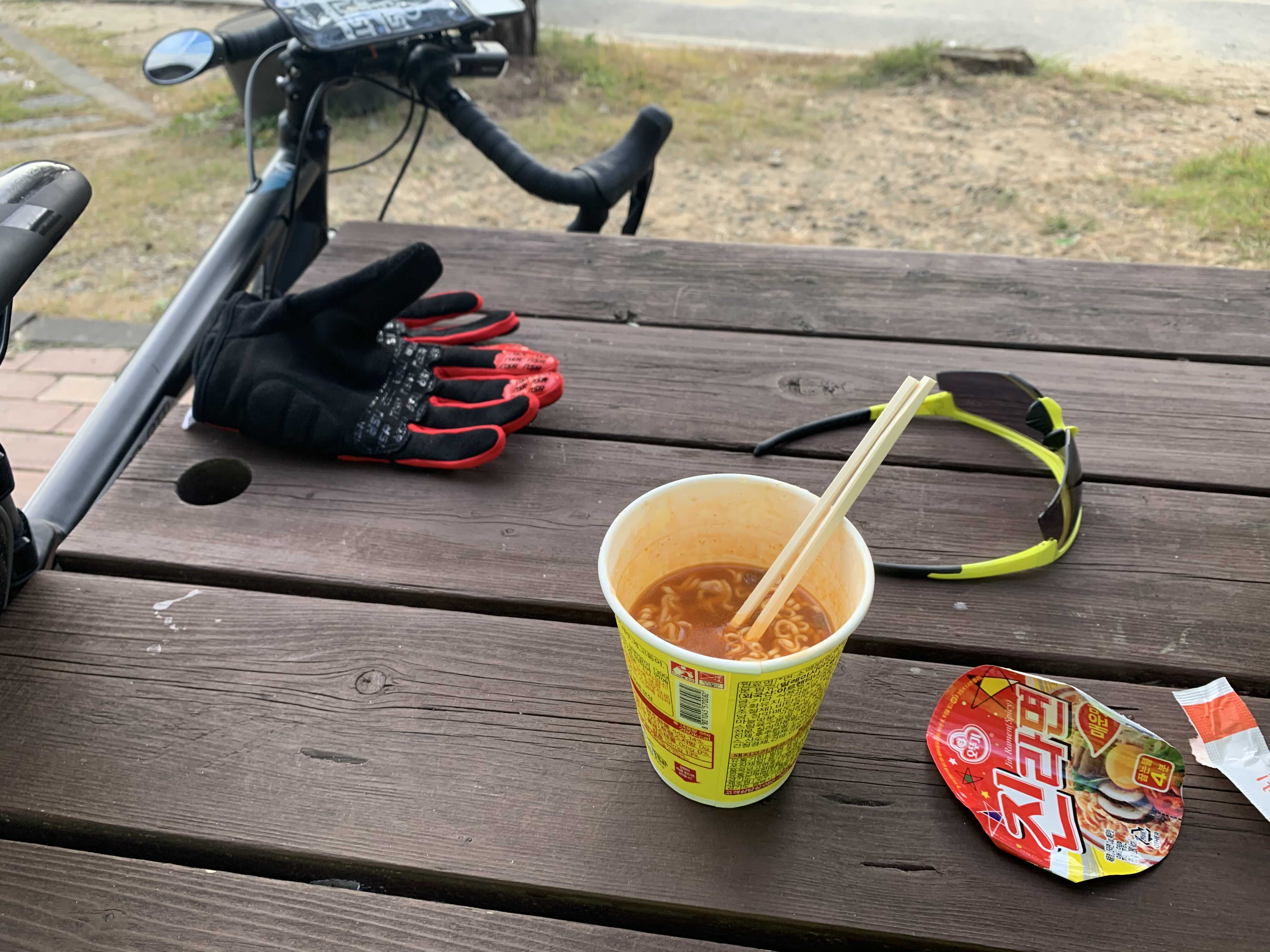자출후 야외에서 먹는 라면은 진리