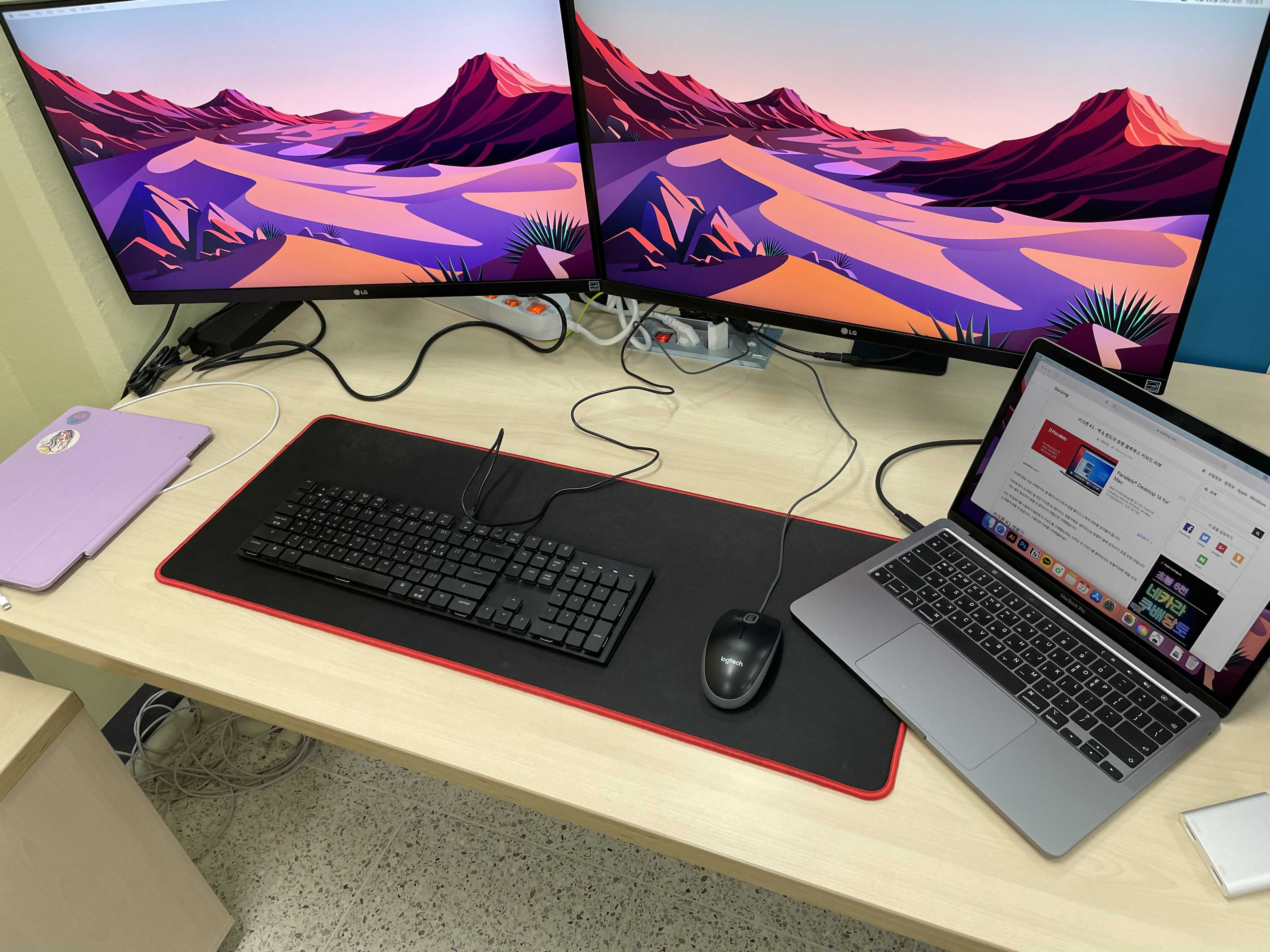 먼저 M1 으로 멀티모니터 연결된 인증사진을 자랑스럽게 보여줌.