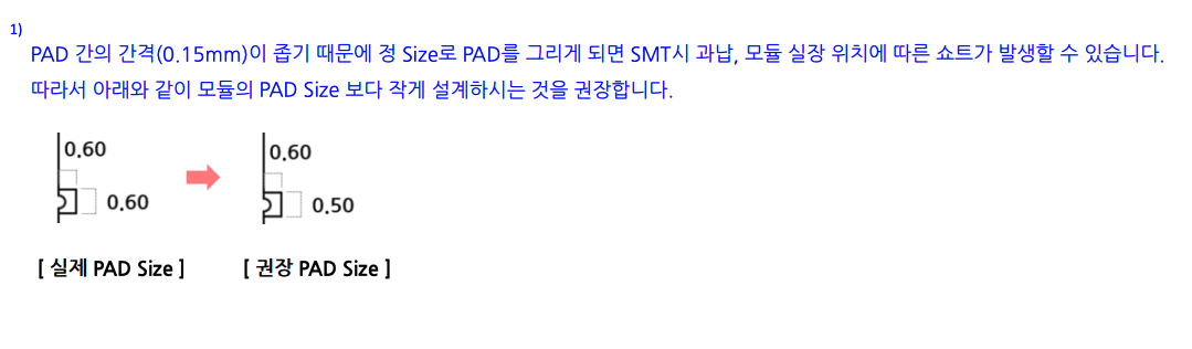 정말 안타깝게도 이 모듈은 정말 흔하고 많이들 사용하는 Espressif의 ESP32 시리즈대비 PAD size가 굉장히 작다.