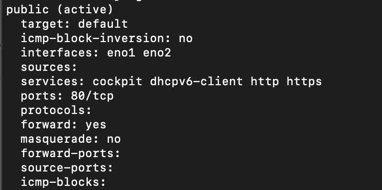 running으로 나와야 되며, running이 나타오지 않는다면, 아래의 명령어로 firewalld 를 설치하거나 실행시켜야 한다.