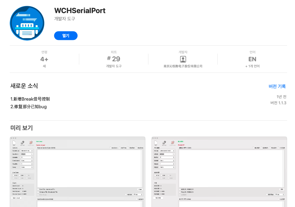 맥에서 사용하는 기준으로 여러 시리얼 프로그램을 사용해봤는데 역시 중국인이 개발한 프로그램이 그나마 쓸만했다.