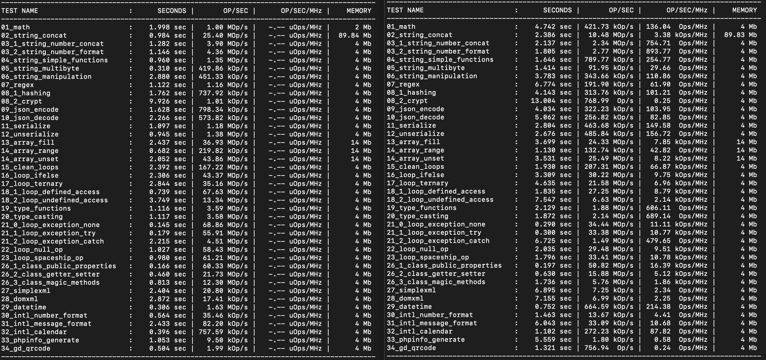 벤치마크는 https://github.com/rusoft/php-simple-benchmark-script/ 를 사용했다.