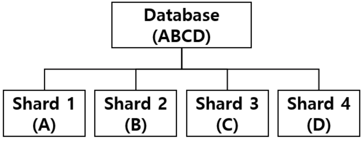 테이블단위, 데이터범위, 해시값등의 샤딩할 데이터의 기준점을 잡고, 각각의 데이터의 추가와 수정을 특정 데이터베이스 서버가 담당하는 형식으로 분담하는 형태로 샤딩을 진행할 수 있다.