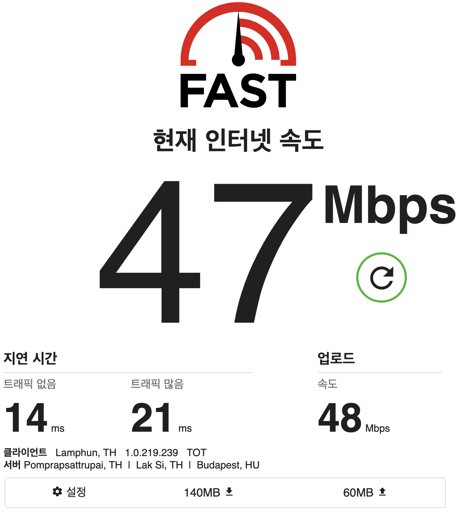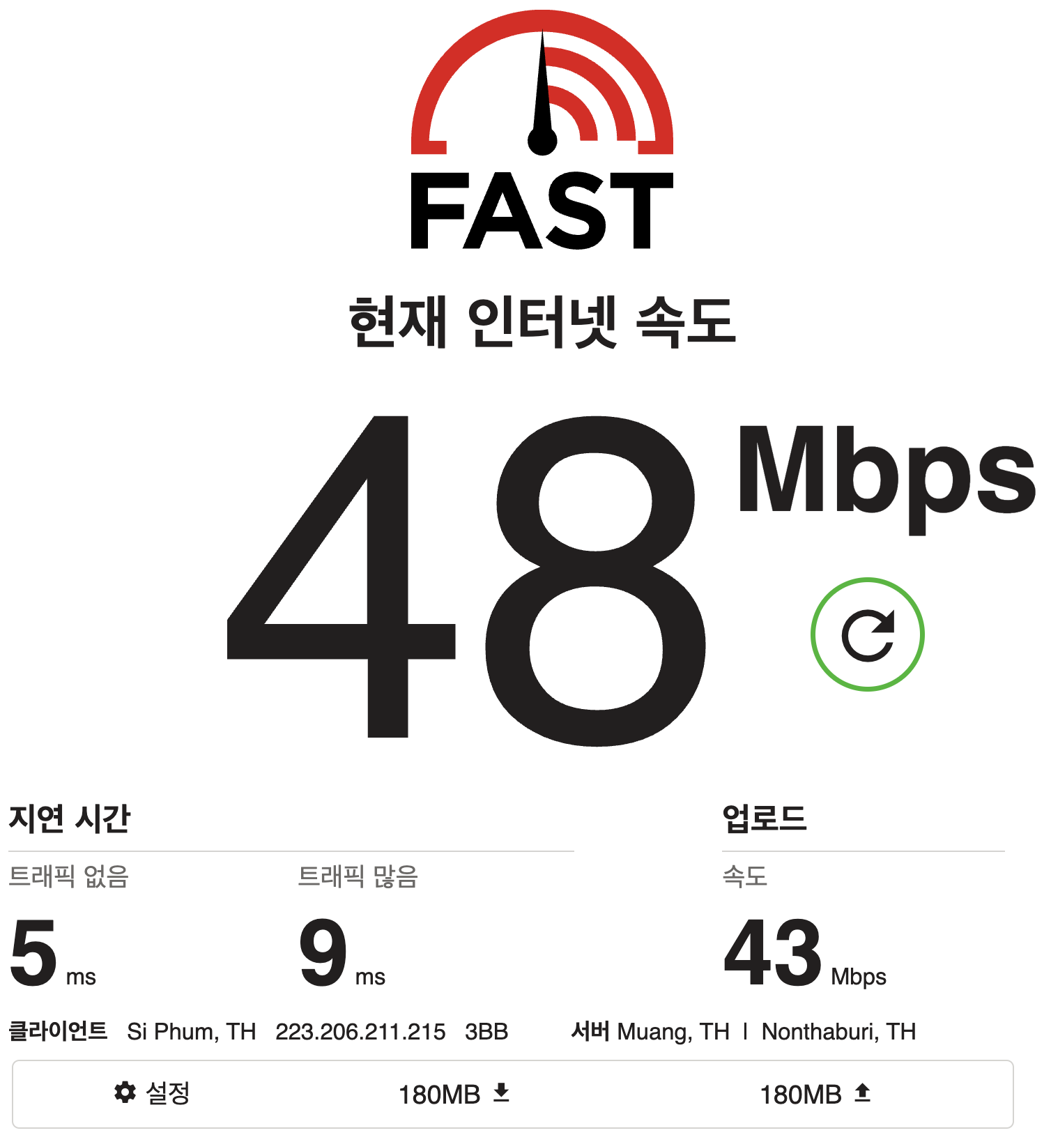 | ISP 회선 | TOT (태국내 3위 통신사, 모기업이 NT로 국영기업임) |