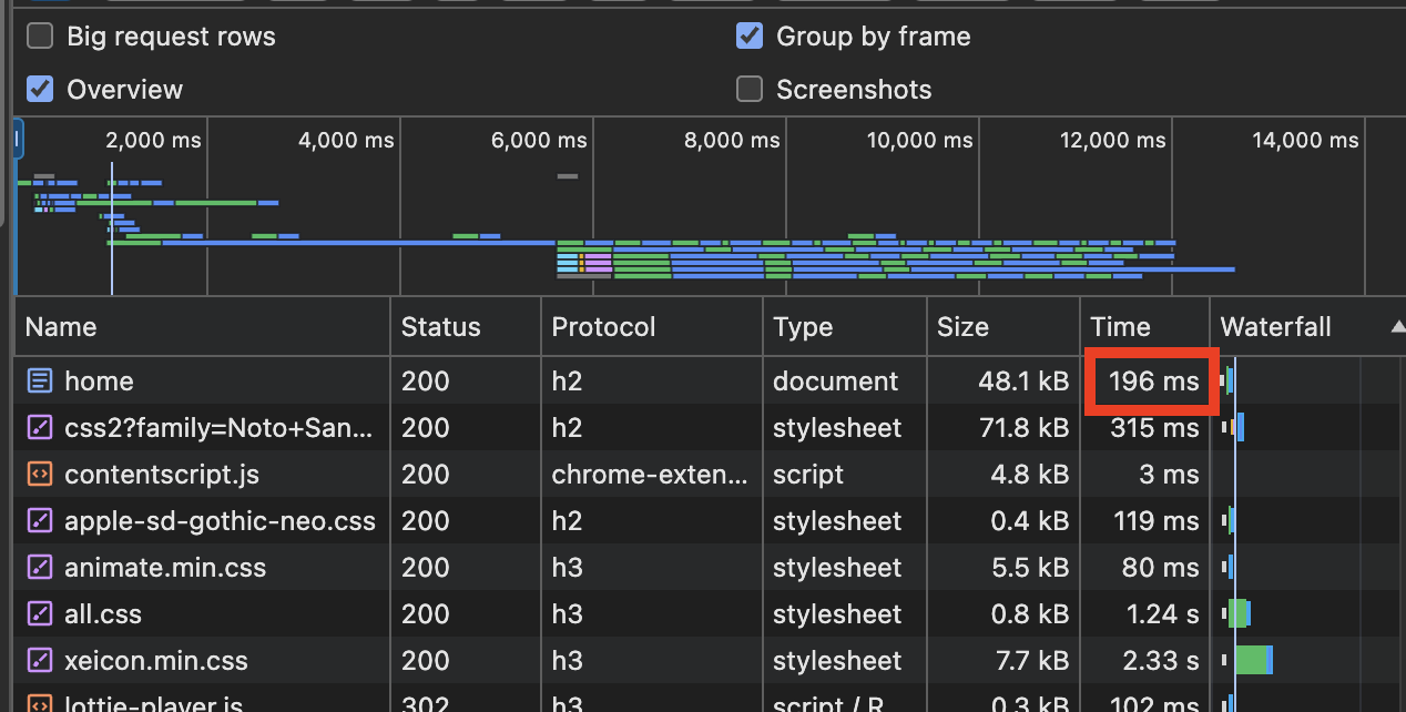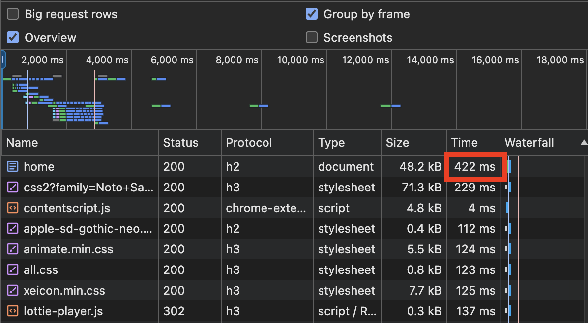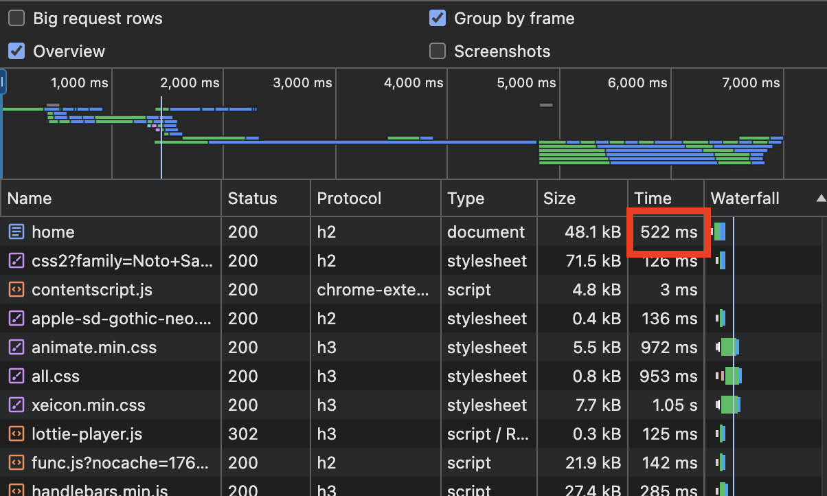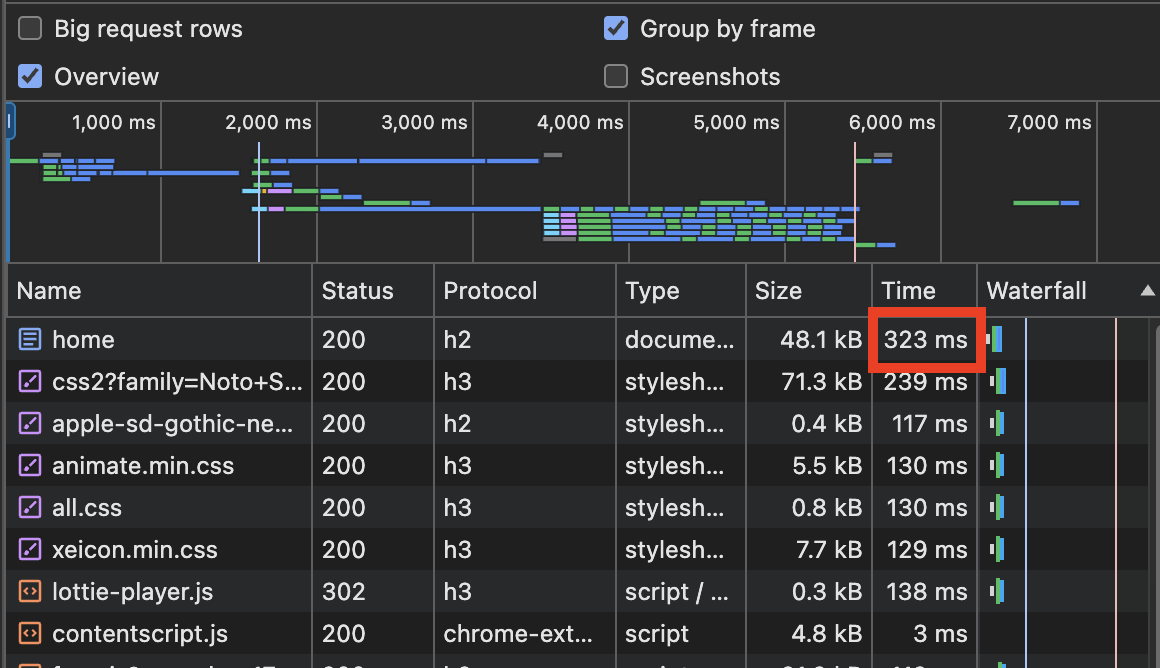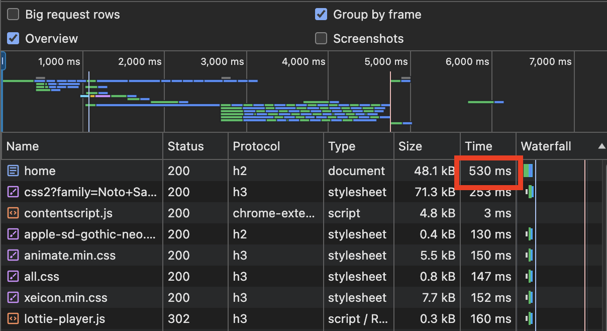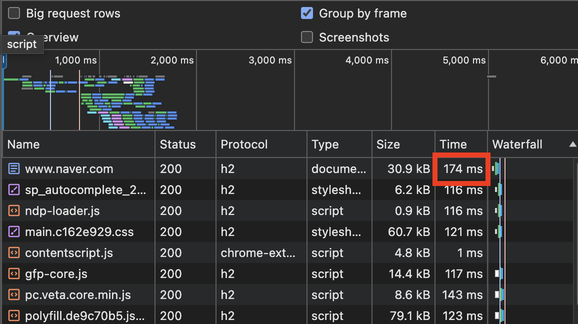 | 네이버메인 Document Waterfall 비교 (낮을수록좋음) |