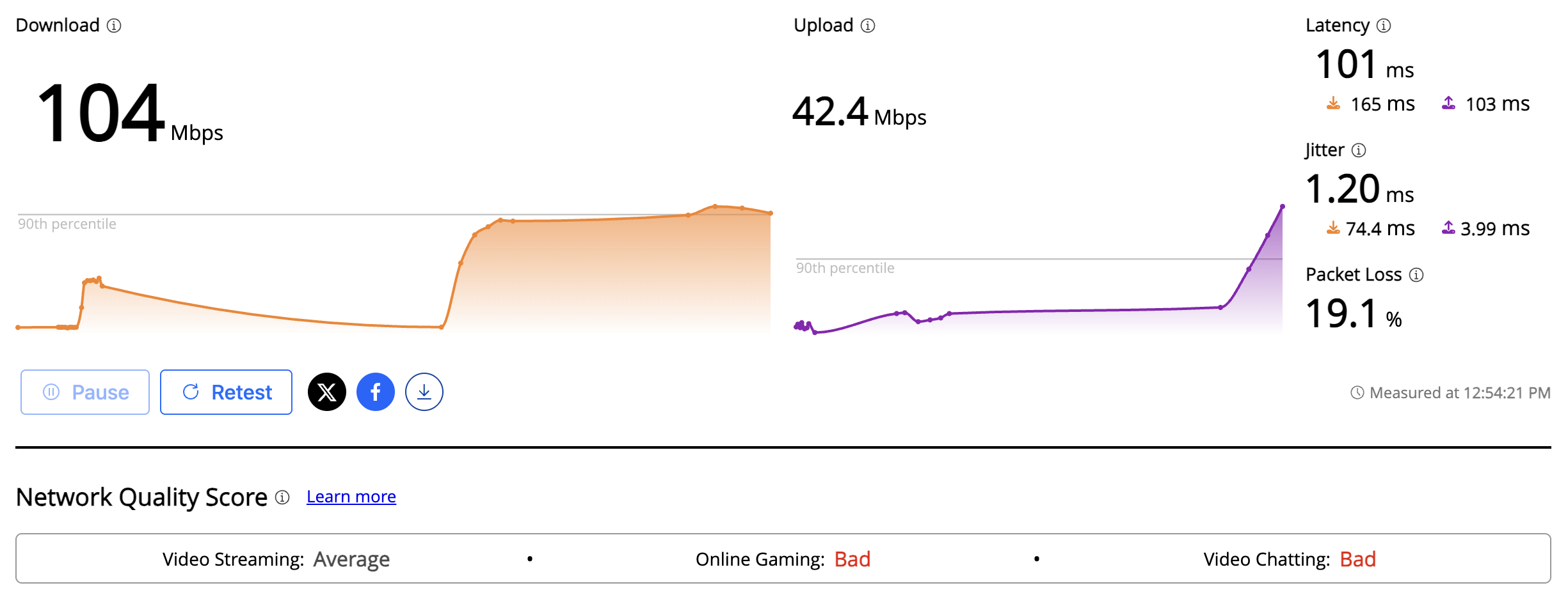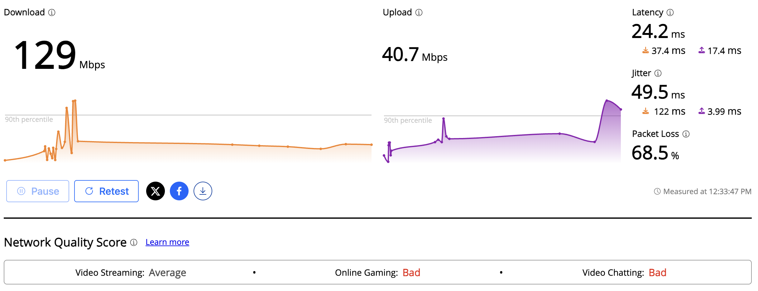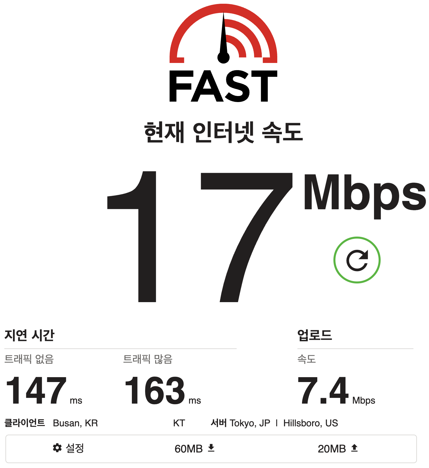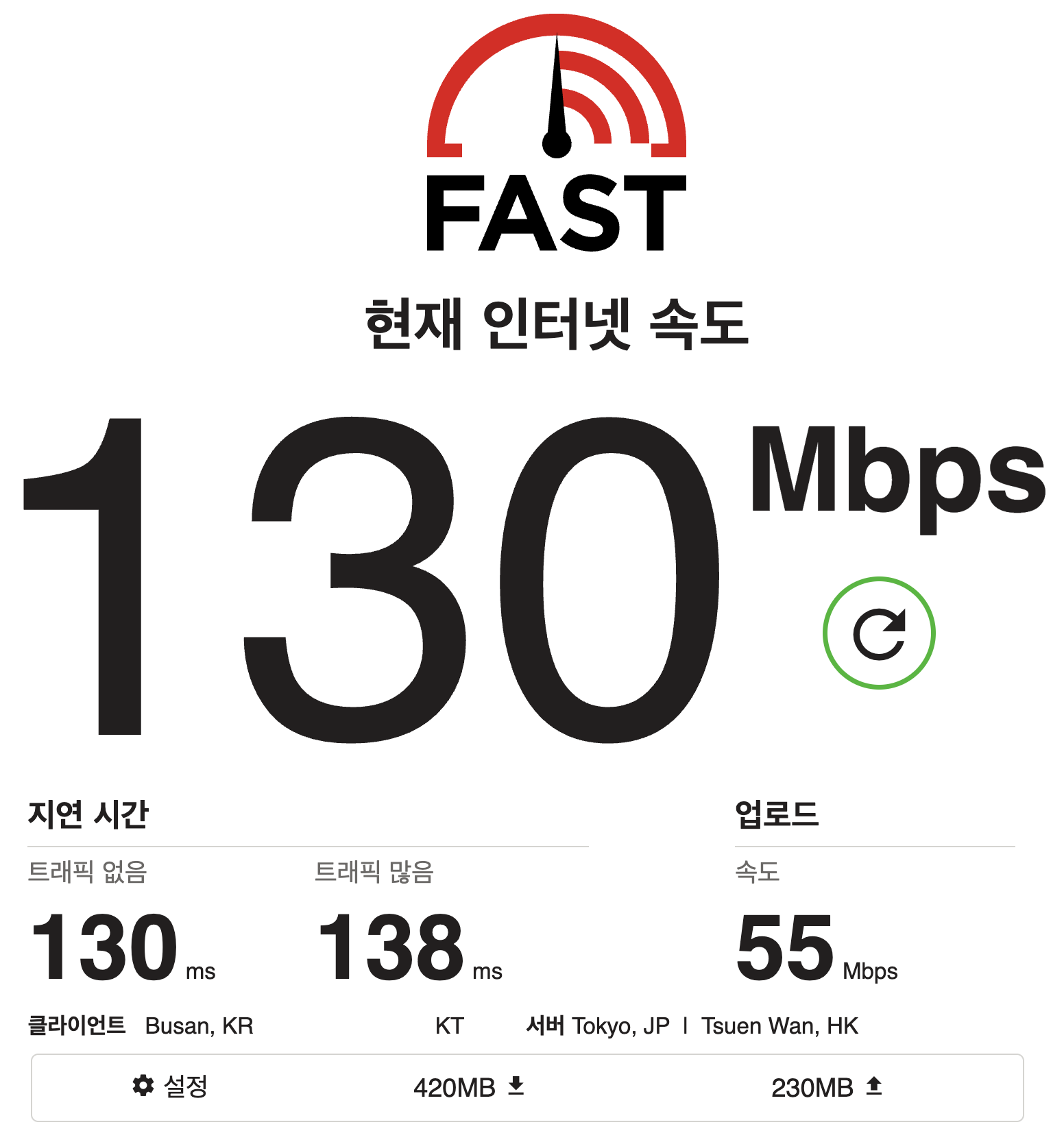 속도요약 : 한시간마다 WIFI가 끊기지만 준수한 레이턴시