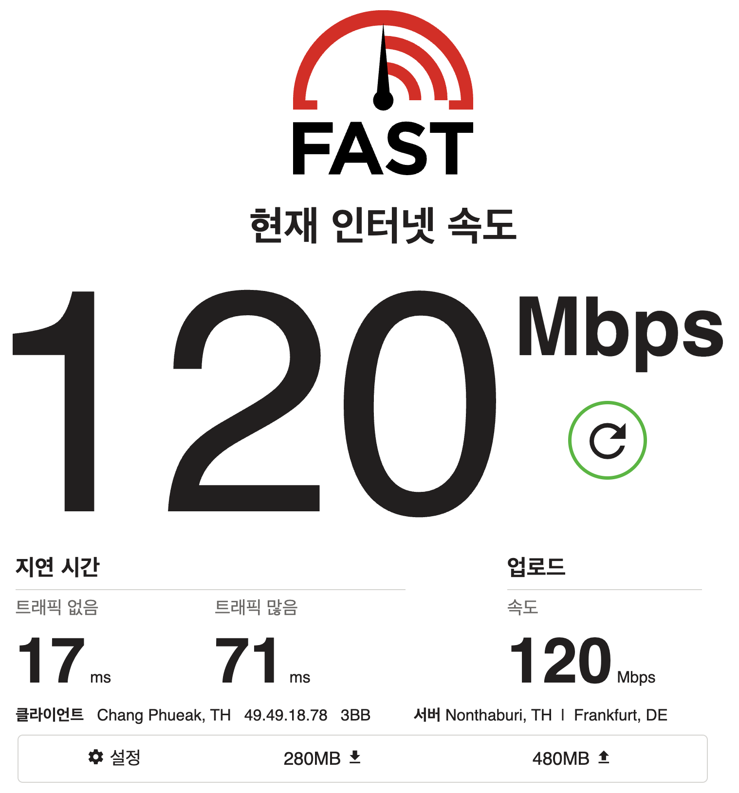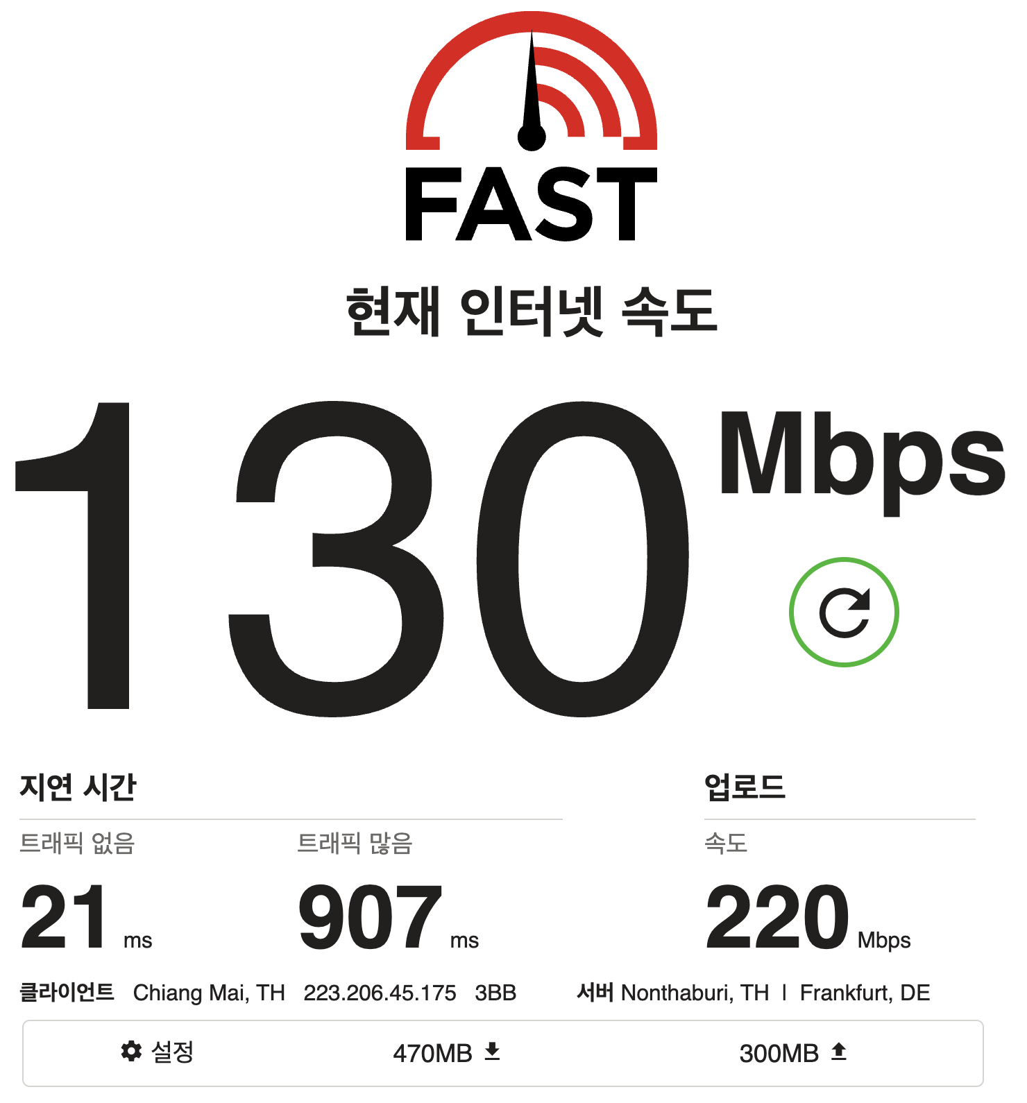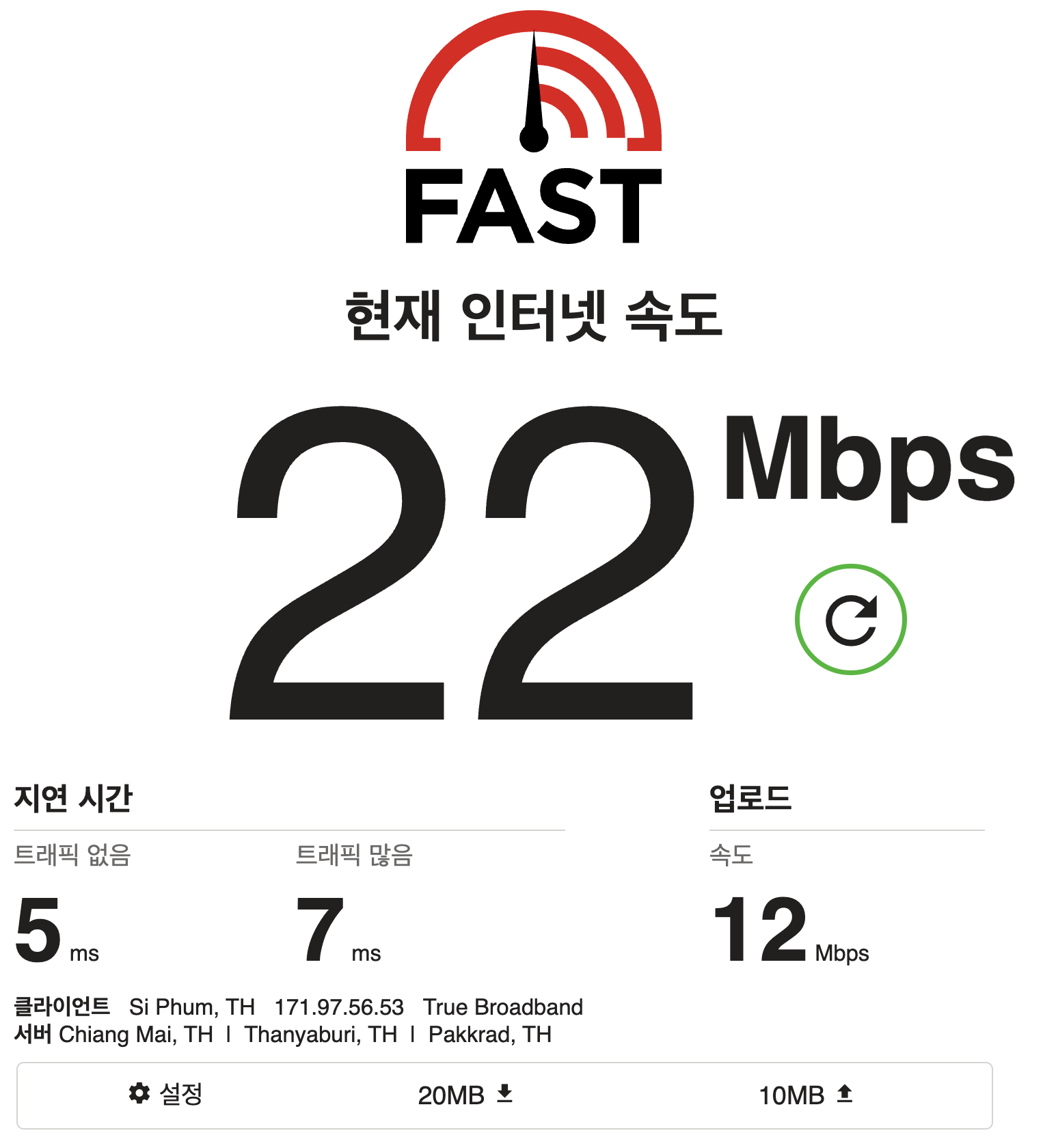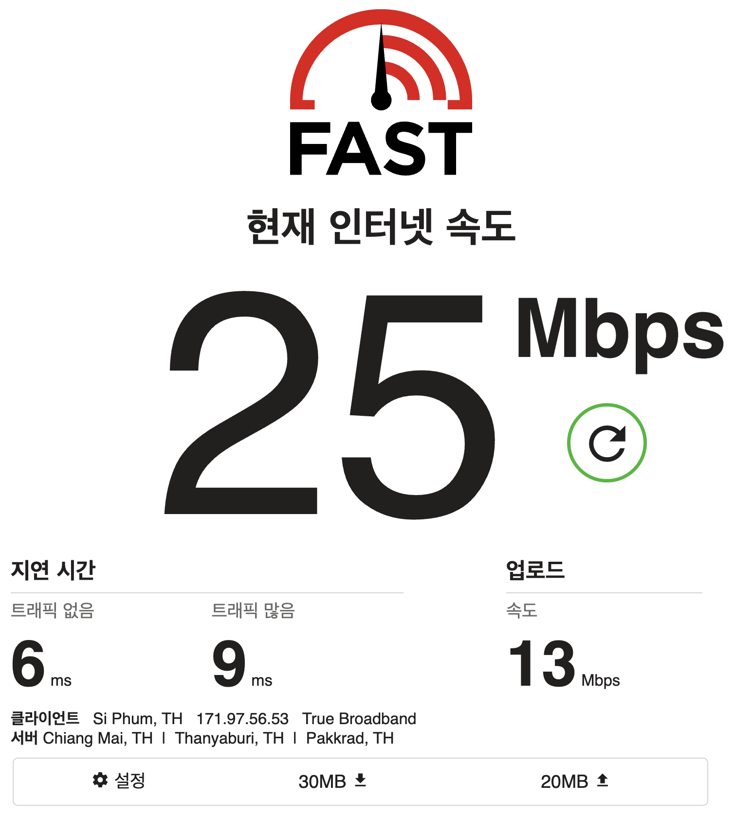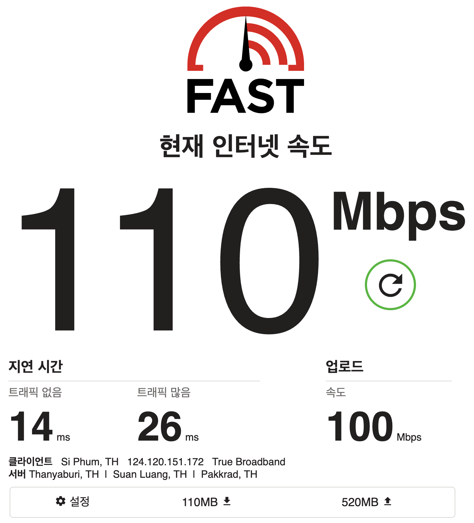 | Netflix 속도비교 | 인터넷 업/다운로드 대역폭 비교 (빠툼타니에 pop 연결가능) |