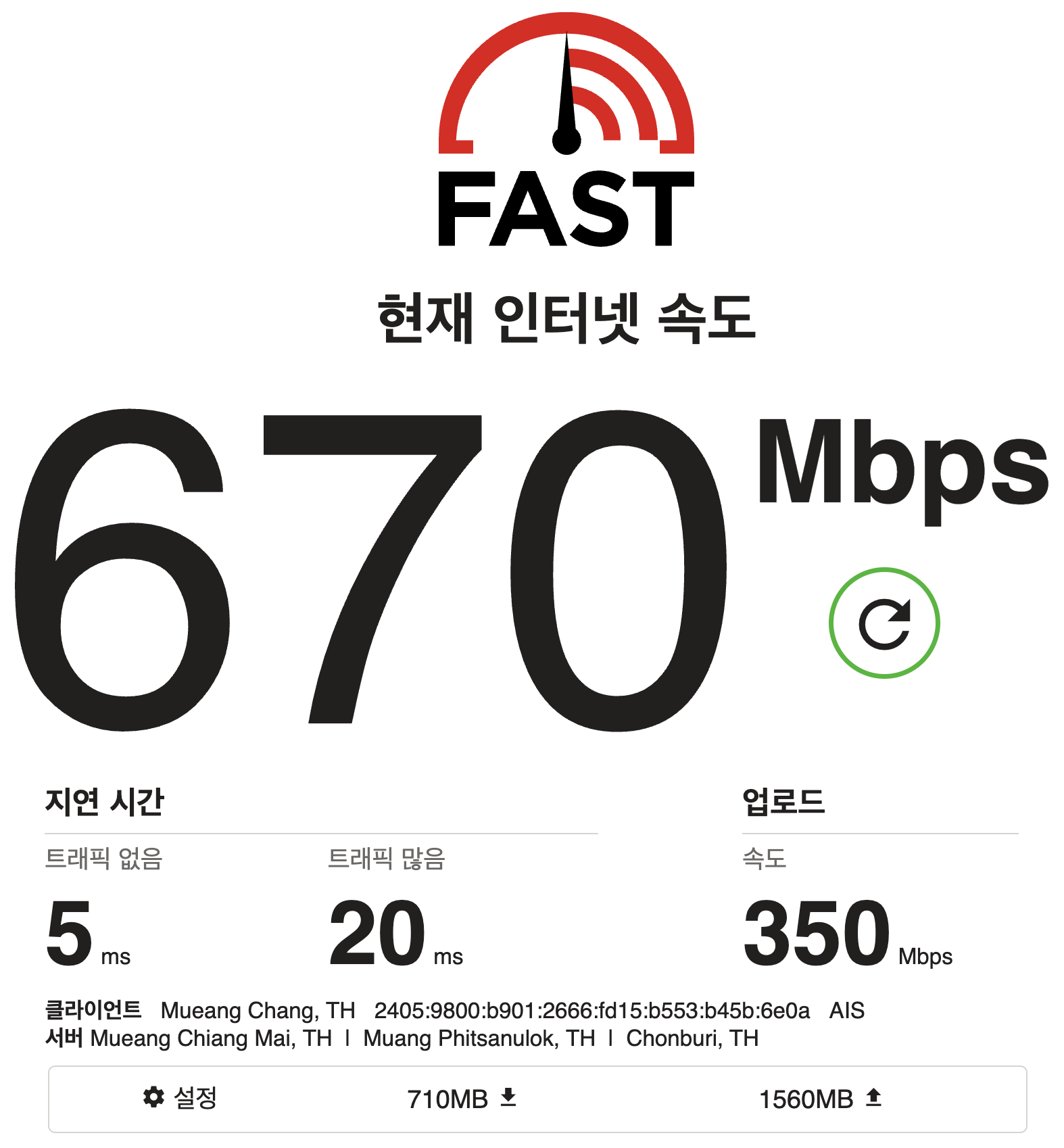 속도요약 : 치앙마이 업로드 대역폭 2위