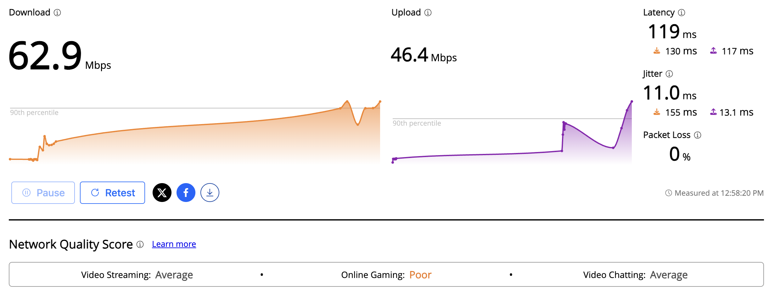 실제로 리모트 워킹을 나갔을때 화상회의, VPN연결, VNC로의 원격작업 등등 여러가지 업무를 해야 할 상황들이 있는데 구체적으로 얼마나 빠른지, 그리고 구체적으로 어떤 코워킹 스페이스의 인터넷이 원격근무하기 용이한지 정확한 정보가 없어서 리모트워킹을 하면서 내돈내산 인터넷 속도를 비교해보았다.