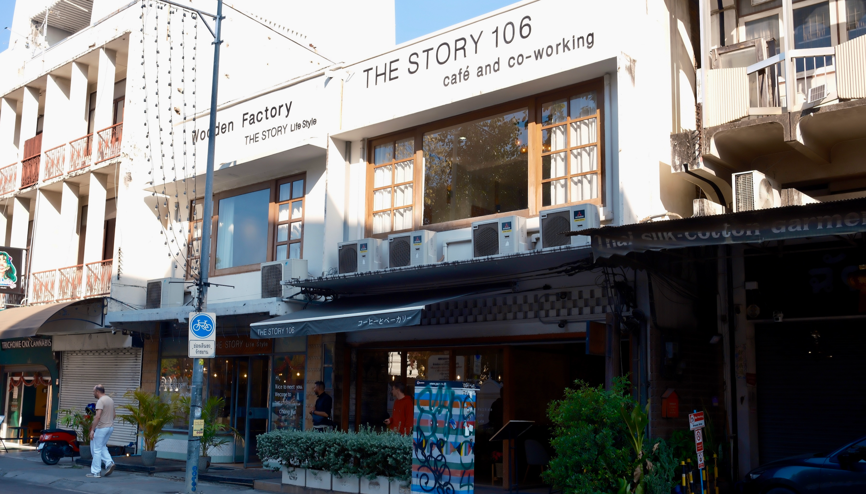 | 시설 이용후기 | 1층은 베이커리 카페로 운영되고 있으며, Coworking Space는 2층에서 이용할 수 있음. 모든 타임에 걸쳐 사람이 매우 적어서 좋았으나, 오토바이는 길에 주차하면 바로 티켓을 받기 십상임. (맞은편 왓 부파람 사찰에 STORY 106에 방문한다고 이야기하고 무료로 주차할 수 있음) WIFI 이용 시 개별 WIFI 패스워드 티겟을 받을 수 있고, WIFI접근 시 해당 계정을 입력해야 이용가능. 커피 한 잔(฿80)을 주문하면 하루종일 이용가능해서 완전 저렴하게 이용가능함. 조용히 대화하고 여유롭게 적당히 흥얼거리며 노트북하는 분위기. 대역폭은 쏘쏘하지만 레이턴시가 치앙마이 코워킹스페이스 중에 베스트라 배포작업하기 좋은 환경이나, 가끔씩 WIFI연결을 다시 시도해줘야하는 문제가 있음. (WIFI 티켓을 2개씩 주는 이유가 있었음) |